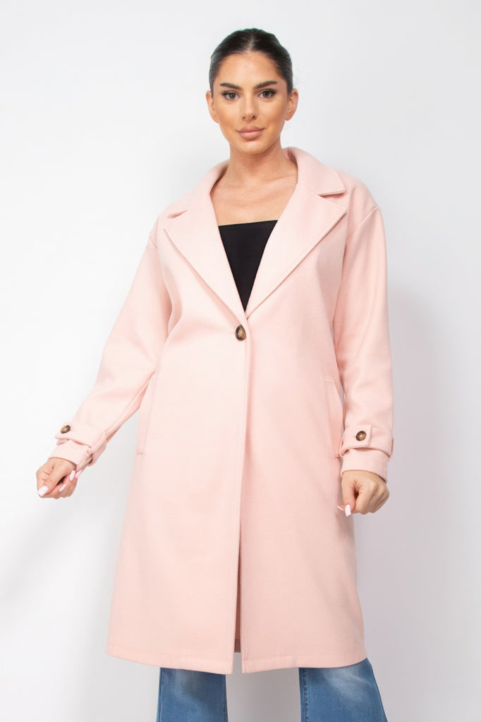 Add the Collar Pocketed Coat in blush to your collection and elevate your fall fashion with a touch of elegance!