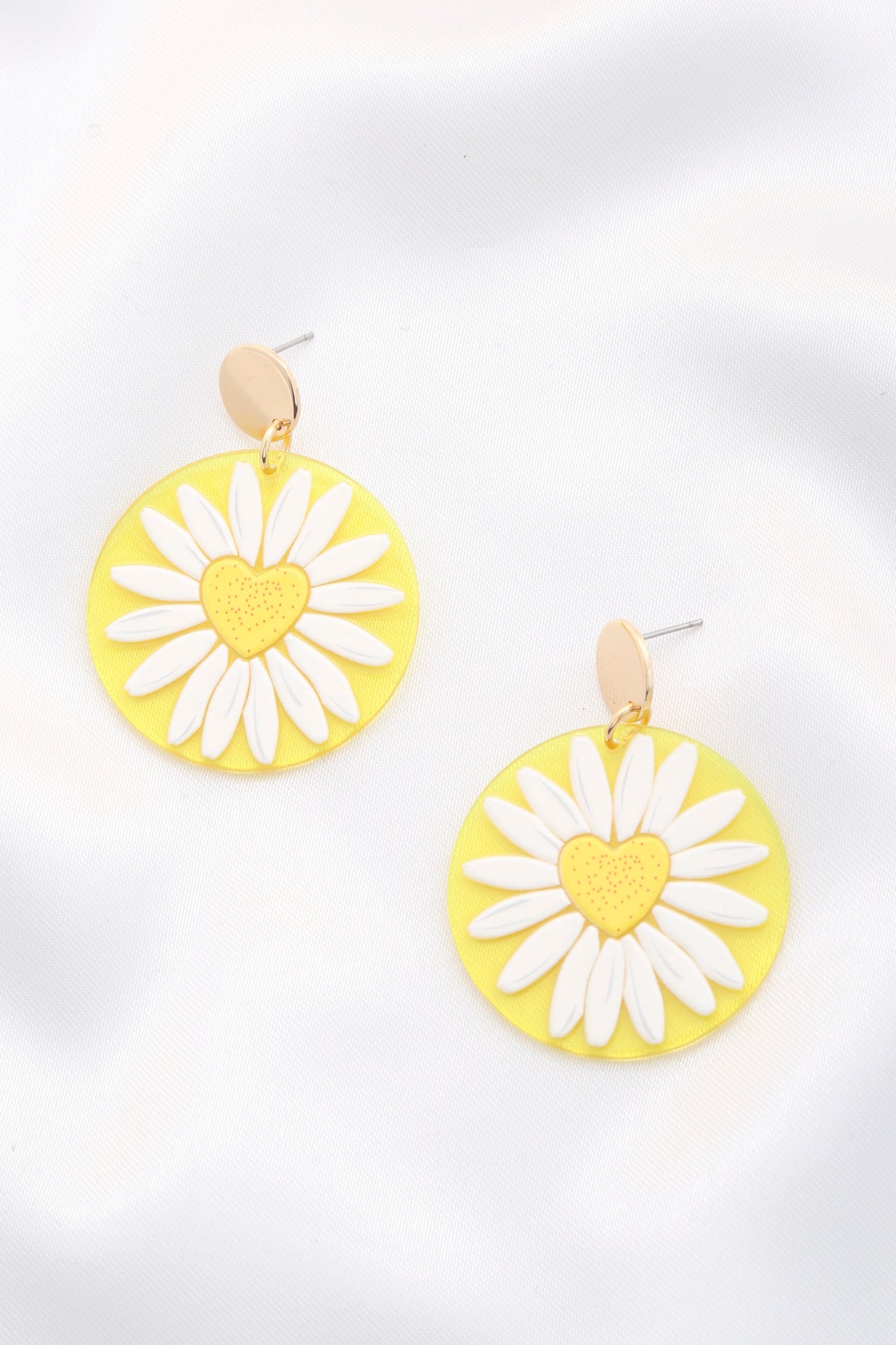 ImportedDAISY PRINTED ROUND AC DROP EARRIINGYellow.Clear.Lavender.Pink FBJ