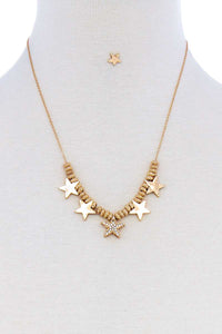 MULTI STAR FASHION PENDANT NECKLACE AND EARRING SET